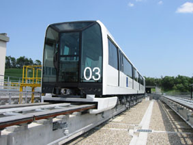 如果提升和驱动模块完全固定到车厢上,则列车将无法转弯,因为每节车厢的尾部会阻止前节车厢的横向运动。为解决这一问题,在列车的每节车厢上安装了五个模块,当列车转弯时,它们会向左或向右滑动,从而使列车可以高速急转弯。这些模块的滑动机构中就使用了我们的 LM 导